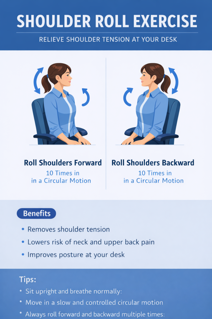Staying active at work doesn’t require dramatic lifestyle changes. These small movements, when practiced daily, can significantly improve posture, energy levels, focus, and overall well-being.