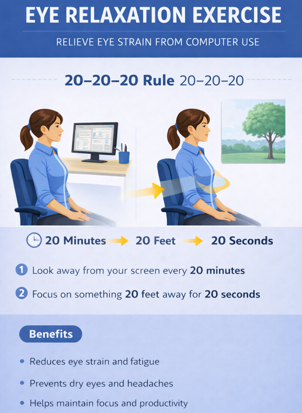 10. Eye Relaxation Exercise (20–20–20 Rule)